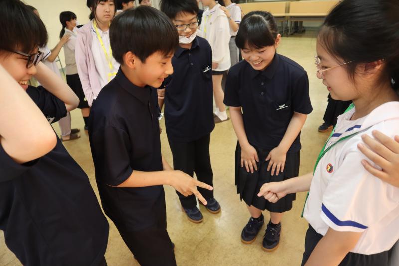 気温が30度を超えているため、生徒たちは教室内でできるゲームを考え、学年対抗で、あるいはグループに分かれて実施しました。