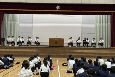 それぞれのプログラムの内容や体験について紹介された後の質疑応答では、「SKIPのキャンプではどのようなことをしたのか」「先輩が実際に行った研究はどのようなものか」「NGGLの選考はどんな感じか」「英語のグループレッスンはどうだったか」など多くの質問が寄せられ、生徒たちは大いに興味を持った様子でした。