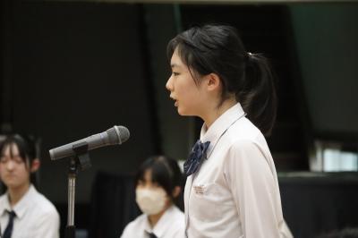 3期生(現高1)の畠山さんが、附属中時代に参加してきた筑波大学の「つくばSKIPアカデミー」と茨城県の「次世代グローバルリーダー育成プログラム(NGGL)」について、約25分にわたって紹介してくれました。