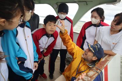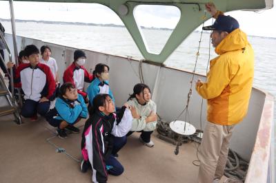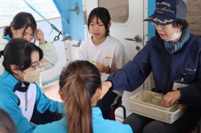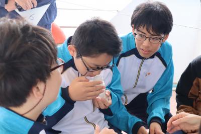 午前中は霞ヶ浦湖畔の「(株)ラクスマリーナ」にて、クルーズ船に乗船し、船の上で霞ヶ浦の歴史的・位置的な背景の説明を受けたり、水の透明度調査・プランクトンの観察などを行いました。午後は「かすみがうら市水族館」に移動して、霞ヶ浦の水域に生息する魚や生き物を観察し、霞ヶ浦水域の生態系への理解を深めました。
